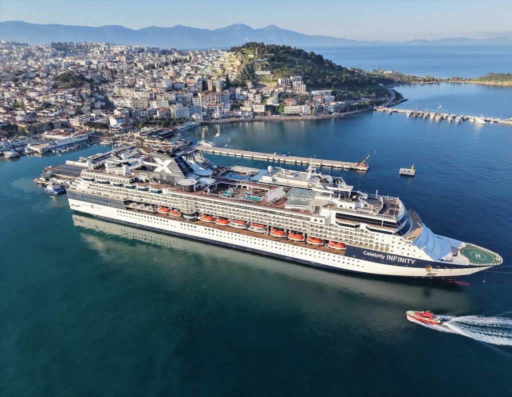 Kruvaziyer turizminin önemli noktalarından Aydın’ın Kuşadası ilçesi, iki kruvaziyerle 2 bin 723 turisti ağırladı.Ege Port Limanı’na Malta bayraklı “Celebrity Infinity” ile Bahamalar bayraklı “Silver Muse” yolcu gemileri yanaştı.