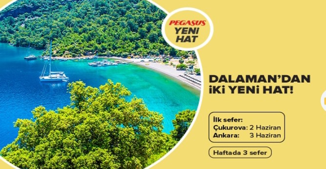 Turizm sezonunun başlamasına az bir zaman kala Pegasus Hava Yolları Dalaman’dan Ankara ve Adana-Mersin’e doğrudan seferler koydu. Karşılıklı olarak haftada 3 gün olarak planlanan uçuşlar Çukurova için 2 Haziran’da, Ankara için 3 Haziran’da başlayacak.