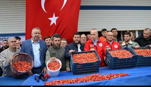 Manisa’nın Şehzadeler ilçesindeki ilk “erkenci kiraz” hasadında toplanan 50 kilogram kiraz için sembolik açık artırma yapıldı ve kilogramı 6 bin TL’den alıcı buldu. Manisa İl Tarım ve Orman Müdür Yardımcısı Serdar Mersinli, Kuzey Yarım Küre’de en erken kirazın Manisa’da hasat edildiğini belirtip, geçen yıl yaşanan don olayının rekolteyi düşürdüğünü, bu yıl ise verimin yüksek olmasının beklendiğini söyledi.