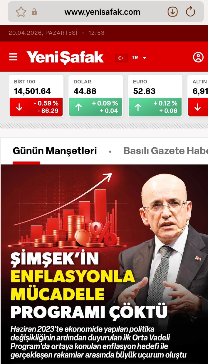 “Şimşek’in enflasyonla mücadele programı çöktü” manşetiyle verilen haberde; “Haziran 2023’te ekonomide yapılan politika değişikliğinin ardından duyurulan ilk Orta Vadeli Program’da ortaya konulan enflasyon hedefi ile gerçekleşen rakamlar arasında büyük uçurum oluştu. Şimşek 2026 enflasyonunu %8,5’a indireceği sözünü verdi. Ancak 2026 enflasyonu en iyimser tahminle %29 olarak gerçekleşecek. Yani hedef ile gerçekleşen arasında %350 oranında sapma meydana geldi” ifadeleri kullanıldı.