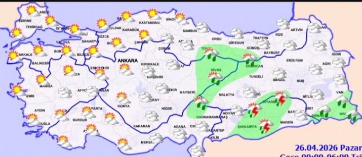 Muğla, Aydın, Uşak, Denizli ve Afyonkarahisar çevrelerinin sağanak ve gök gürültülü sağanak yağışlı geçeceği tahmin ediliyor. Rüzgar Ege kıyılarında kuzeyli yönlerden hafif, ara sıra orta kuvvette esecek.