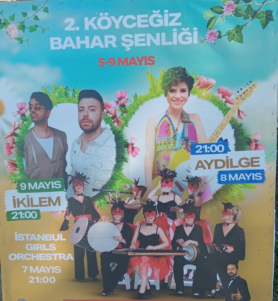 Muğla’nın Köyceğiz ilçesi baharı karşılıyor. Köyceğiz Belediyesi’nin bu yıl ikincisini düzenleyeceği Bahar Şenliği 5-9 Mayıs tarihleri arasında yapılacak. Şenlik süresince İkilem, Aydilge ve İstanbul Girls Orchestra konserlerinin yanı sıra showman Muhammet Büyüktepe de sahne alacak.